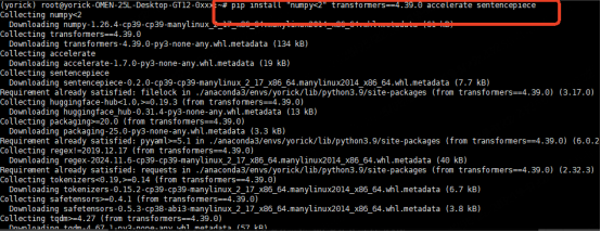 (yorick) root@yorick-OMEN-25L-Desktop-GT12-0xxx:~# pip install "numpy<2" transformers==4.39.0 accelerate sentencepiece