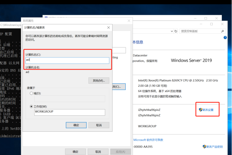 8)进行远程桌面连接(使用新添加弹性网卡IP连接),将网卡1禁用(后期全程使用新添加弹性网卡)且找到新添加弹性网卡,并设置为弹性公网IP。计算机名改为【ad】如图所示:
